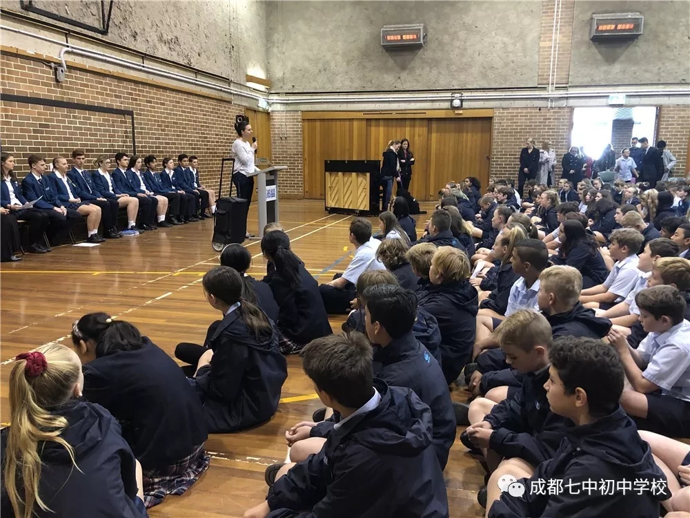 在学校礼堂,悉尼葛斯敦中学全校师生为我们举行隆重的欢迎仪式。