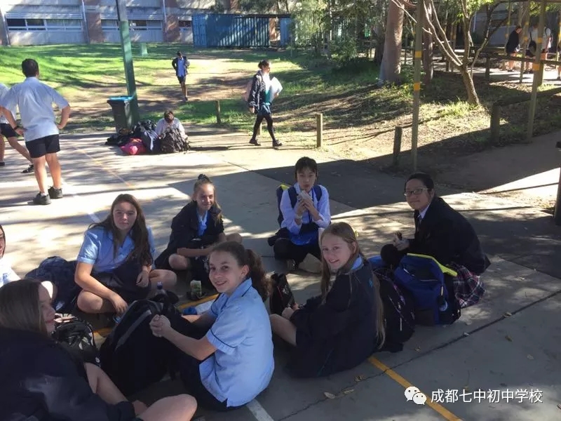 午餐的时候,澳大利亚的同学很“接地气”,直接开心地坐在地上。入乡随俗,在和煦的日光中,我们也和草地“亲密接触”,享受到了别具风味的澳式学校午餐。