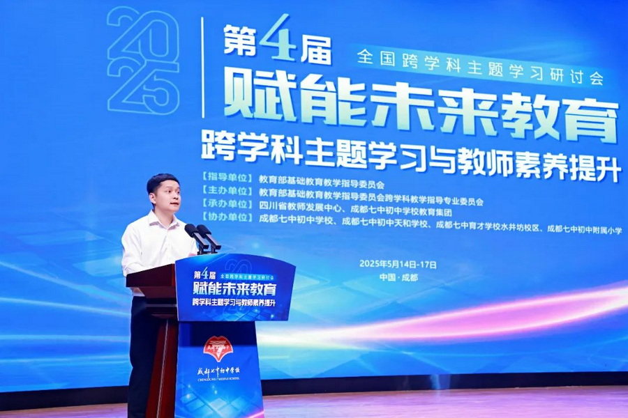 2025年5月15日,由教育部基础教育教学指导委员会指导、教育部跨学科教学指导专业委员会主办,四川省教师发展中心与成都七中初中学校教育集团联合承办的第四届全国跨学科主题学习研讨会在成都七中初中学校天环校区顺利举行。全国千余名教育专家、教研骨干与一线教师齐聚蓉城,近3万名教育工作者通过云端同步参与,围绕“赋能未来教育:跨学科主题学习与教师素养提升”主题,以理论研讨、实践展示、区域经验分享、名校实地考察等多元形式,共探跨学科教育创新发展路径。
