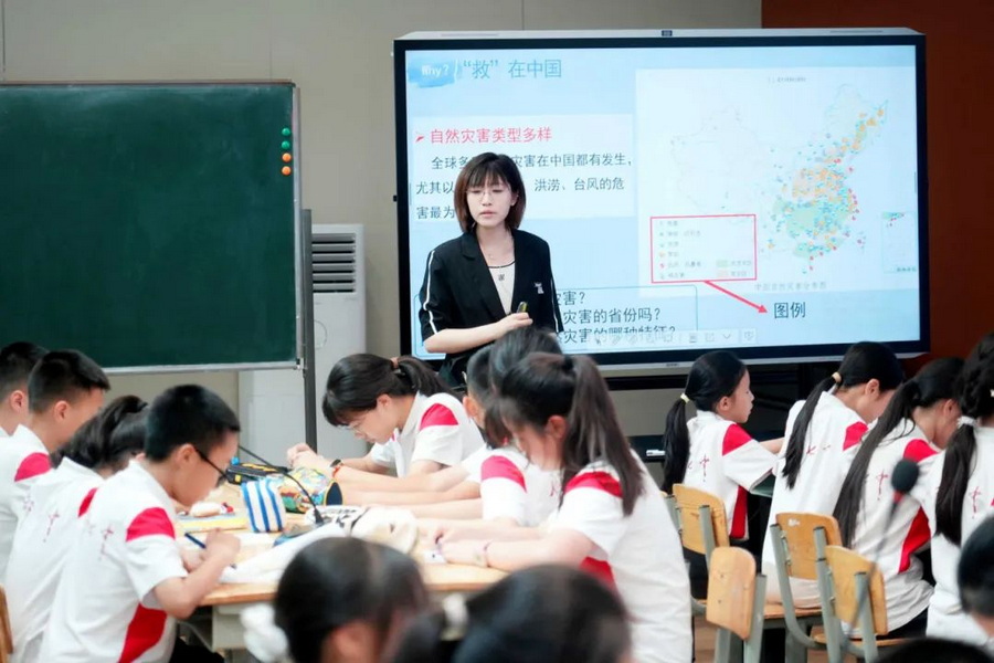 北京市第二中学朝阳学校地理教师苗颖茜与天和学校六年级(2)班联合开展《地动知理 避险守道》跨学科防灾教育课程。课程以"自然灾害的时空规律"为核心议题,通过灾害现场影像建立情境认知,引导学生析法解读中国自然灾害风险分布图,归纳灾害分布特征。通过对比应急物资储备库与应急避难场所的功能矩阵,学生完成从灾害认知到减灾策略设计的深度学习闭环。