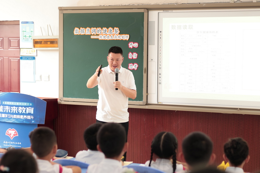 成都市龙泉驿区天鹅湖小学张宇老师和天和学校四年级(4)班的同学们一起分析《数据烹调的健康餐》,完美融合了数学、健康教育与生活实践,让数字真正成为守护健康的“金钥匙”。张老师以“鹅探”体检表为切入点,引导学生发现问题,从而通过阅读资料,了解身体需要的七大营养素,再用条形统计图统计七大营养素,最后整理、分析数据,帮助鹅探制作一份营养餐,明确合理膳食的重要性。最后,“设计师”们用数字破解食物密码,用健康知识设计食谱。在这节课上,学生们经历了数据收集、整理和分析的过程,更深刻体会出了数据背后的作用与价值。