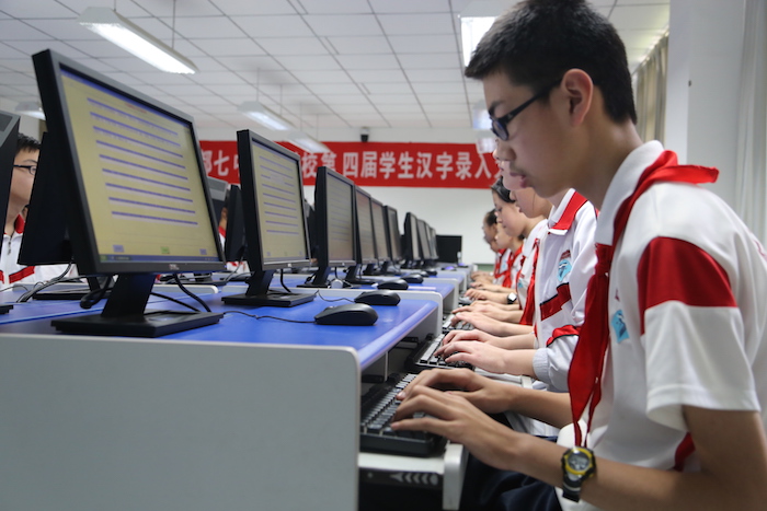 2015年4月17日中午,我校举行的“眼明手快,指舞飞扬”第四届学生汉字录入大赛,在网络机房圆满地落下了帷幕。
