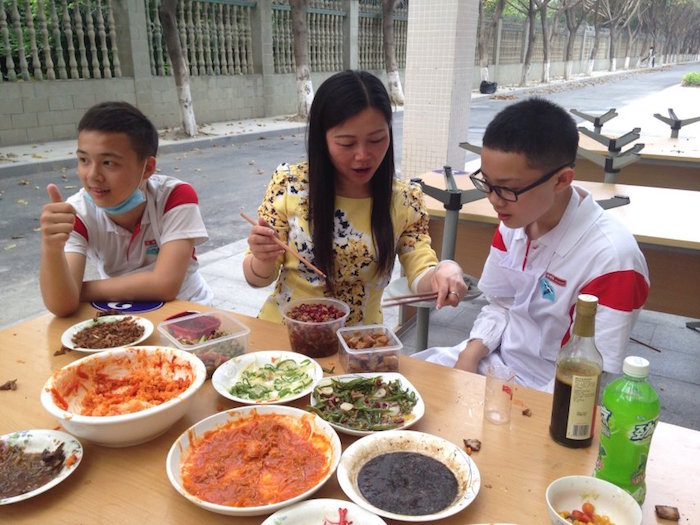 外面醉人的阳光把浓荫照得更加郁郁葱葱。我爱七初的厨艺课。我爱我的2班。我爱七初我的学校!
