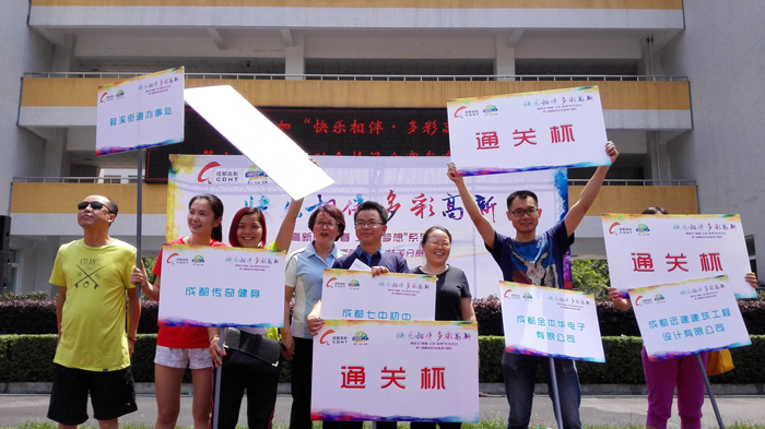 “快乐相伴,多彩高新”高新区“青春文明 梦想”第八届趣味运动会桂溪分赛于5月9日在锦晖小学举行。我校高度重视,由邱兴华副校长带队,郑刚、张力生、李中萍、胡国典等十余名老师积极参与。老师们在“勇往直前”、“马到成功”等若干个团体趣味活动中团结协作、奋勇拼搏,最终以优异的成绩从参与此次活动的23支队伍中脱颖而出,获得决赛通关杯。