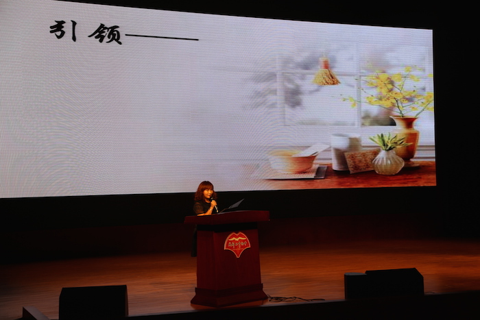 一个记录2016届学生初一初二点点滴滴生活的的短片把在场师生带入了甜蜜的回忆之中。大家笑着鼓掌欢迎李笑非校长致辞。李校长跟大家分享了今年学校取得的跨越性突破。她结合自己去珠峰的经历与师生分享了三句话:承担责任首先需要自信;保持自己内心的宁静,让自己变得强大起来;你的世界,你自己决定它的精彩。她告诉大家,一个人之所以能站在制高点上,一是有一个强烈的愿望在牵引,二是有一个充分的自信在推动,最重要的是为此付出了全部能力。