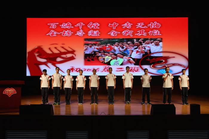 9月1日,在上午召开隆重的开学典礼后,下午,成都七中初中学校2016届初三动员会在音乐厅举行。大会由2016年级组长杜明元老师主持。