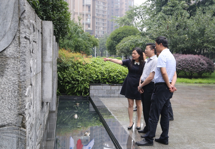 李笑非校长向吴凯书记介绍 院士墙