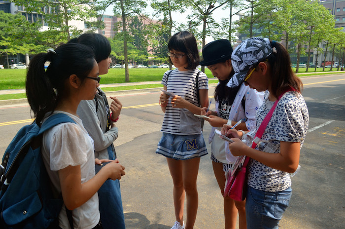 先谈一谈我们的采访吧!在这次活动中,我们很多人都突破了自己,比如第一次主动对陌生人采访,第一次自信的用英语和外国人交流……我们采访的第一站是台湾国立清华大学,我们以小组竞赛的形式来深度访谈大学生眼中的领导力,在这个过程中极大的考验了我们的勇气和语言的得体性。我们刚开始还不敢对大学生提问,害怕他们会回绝我们的问题。但在后来我们渐渐的胆大了起来,能够轻松的与他们交流思想。