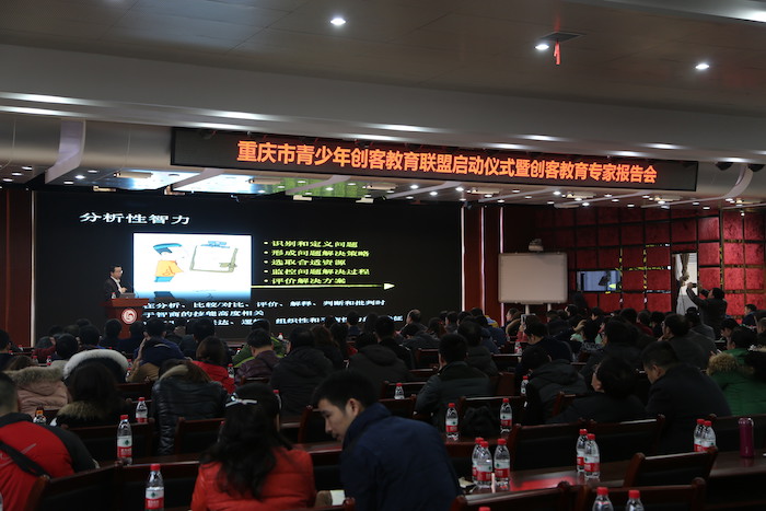 上午,李校长一行听取了北京师范大学著名教育技术专家黄荣怀教授题为《创客教育与创新能力培养》的精彩报告,黄教授主要从高中“干中学”、初中“做中学”、小学“玩中学”三个阶段阐述了创客教育对我国基础教育的积极意义,并为我们介绍了北师大团队所做的创客教育实践。接着,清华大学《现代教育技术》宋述强副主编做了题为《创客运动与第四次工业革命》的报告,宋老师从技术对教育的影响出发,深刻阐述了创客运动对教育推动作用。随后,李校长一行参观了重庆二十九中创客空间——蚂蚁梦工场、艺术中心和3D投影教室。蚂蚁梦工场蚁站、蚁汇、蚁坊、蚁群、蚁巢的设计独具特色,五大区域功能各异,共同构成了学生们逐梦、筑梦的创客空间。