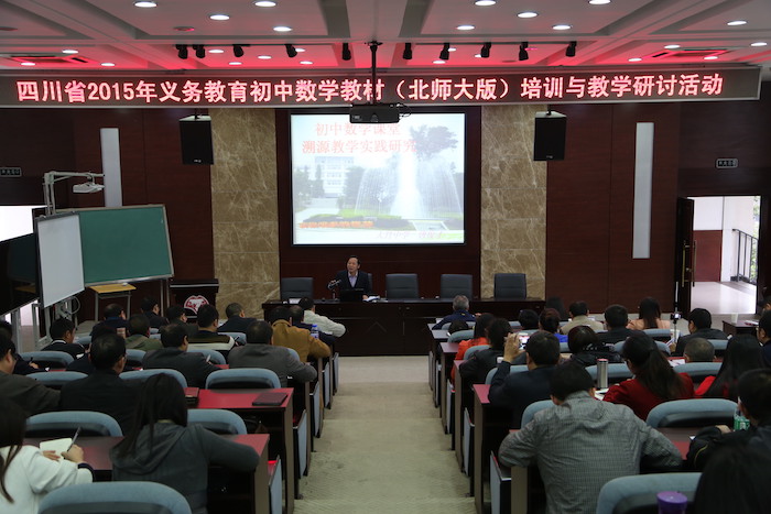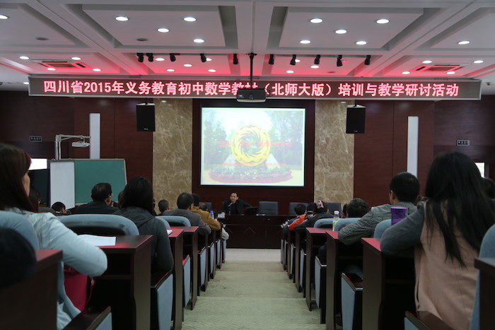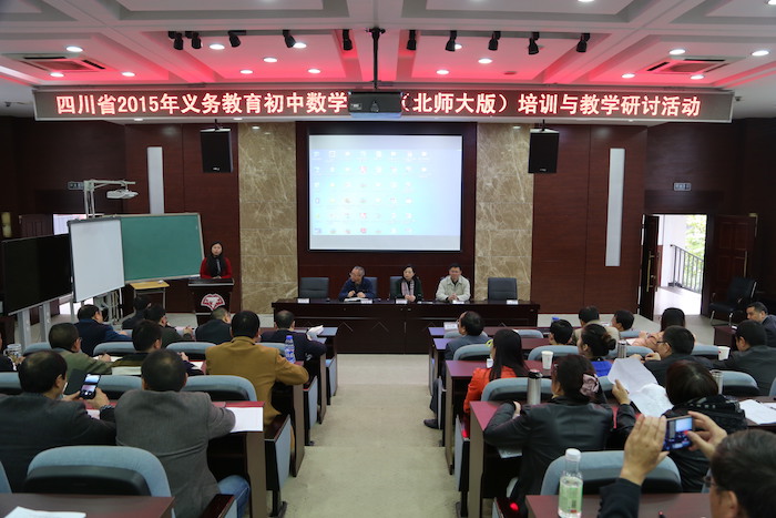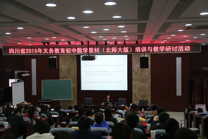 2015年11月3日到4日,由北京师范大学出版社主办、四川省教育科学研究所承办的“2015年四川省义务教育初中数学教材(北师大版)培训与教学研讨活动”在我校举行。本次会议由使用北京师范大学出版社初中数学教材的成都市、达州市和雅安市的学科教研员与部分骨干教师组成,省教科所吴中林老师、市教研员黄祥勇老师主持。