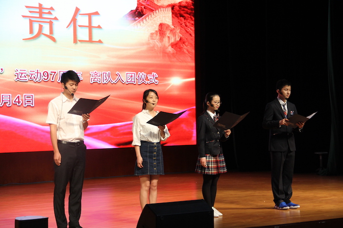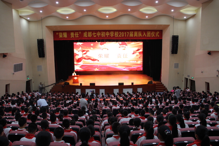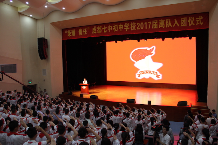 2016年5月4日,成都七中初中学校2017届离队入团仪式在音乐厅举行。