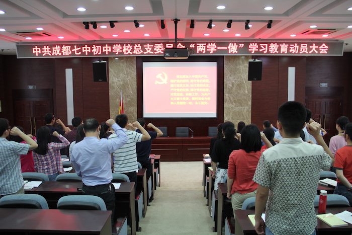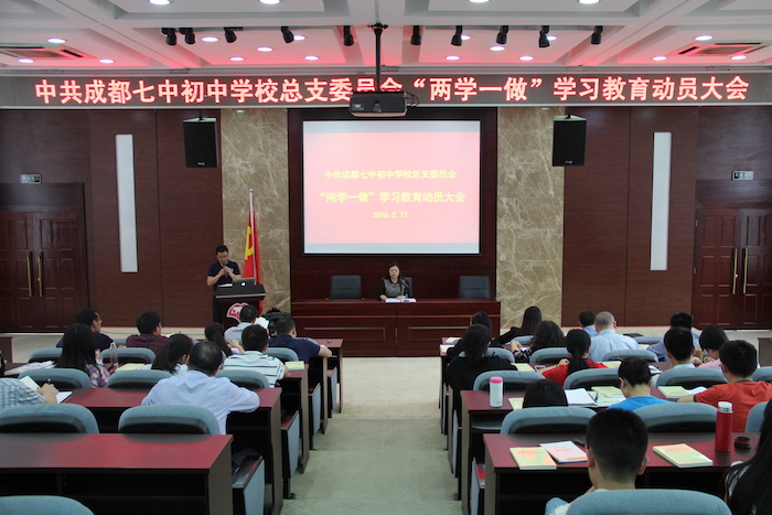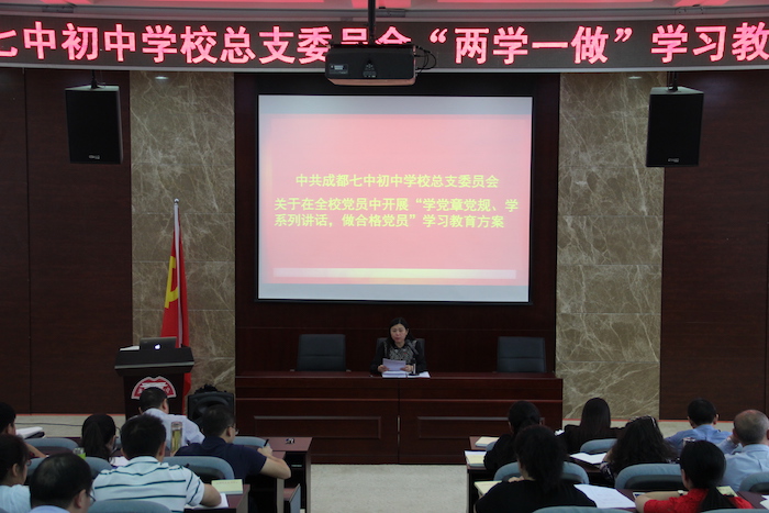 党总支书记李笑非校长组织学习《成都七中初中学校“学党章党规、学系列讲话,做合格党员”学习教育实施方案》与《成都七中初中学校“共产党员示范行动”实施方案》,布置相关工作。她强调,开展“两学一做”学习教育,是落实党章关于加强党员教育管理要求、面向全体党员深化党内教育的重要实践,我校的学习教育要增强针对性,“学”要带着问题学,“做”要针对问题改。以党总支学习带动全体党员集中学习与自学,采用党课、知识竞赛、心得体会与专题讨论相结合的方式进行,使学习教育活动扎实深入开展。