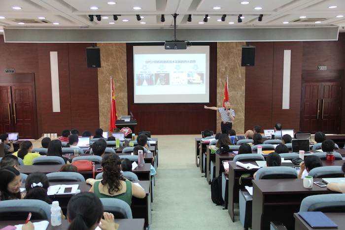 7月1日下午,我校全体党员与老师在听取专家讲座中度过了一个有意义的建党节,上海师范大学黎加厚教授作《移动互联时代的教育变革与教师准备》的讲座,受到全体老师的热烈响应。