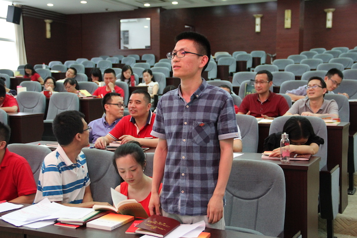 这次竞赛活动竞赛活动是为检验近段时间党员自学情况而设计的,由党总支委员邱兴华副校长主持。四个支部各选派4名选手参赛,竞赛分为个人必答题、风险题、附加题,由主持人随机指定选手作答。竞赛内容涉及到习近平总书记治国理政方方面面的知识,选择题似是而非的答案极易出错,问答题热点、重点、关键点频频出现。现场时而气氛紧张,时而轻松大笑,时而辩论声迭起,全体党员在主持人的阐释中对基本的概念、原理印象更加清晰,达到了“以赛促学”的目的。