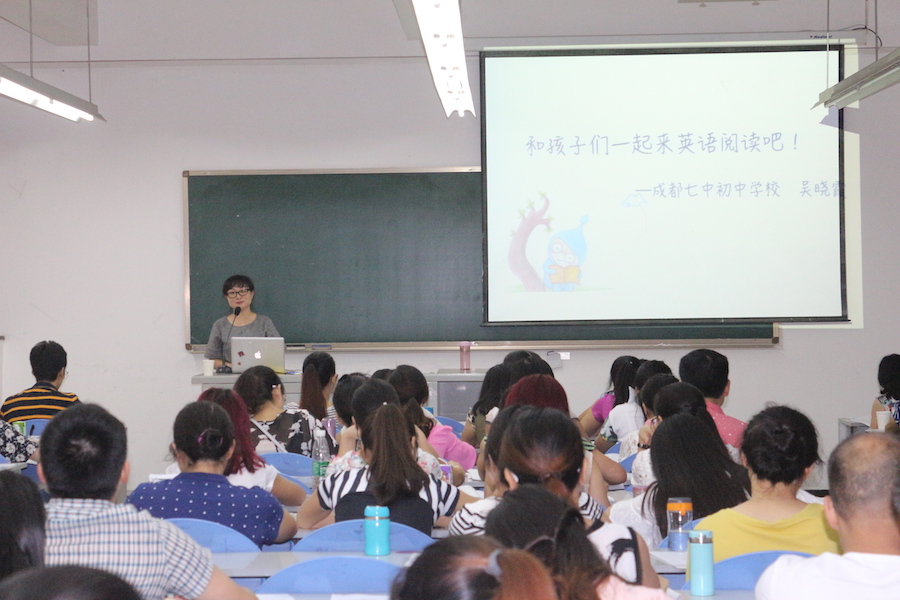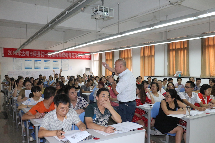 燃情七月、骄阳似火。2016年7月7日、7月11日、7月12日,我校英语组的王翔宇、孙泽福、吴晓霞三位优秀老师分别受邀前往成都师范学院,给在此参加进修学习的“2016年达州市渠县初中英语教师成都师范学院研修班”的学员们上示范课和做专题讲座。王翔宇老师给学员们上了一堂生动有趣、深入浅出的“人教版(新目标)九年级英语话题复习”示范课和做了一场题为《基于未来学校背景下的中考英语复习阶段课程教学标准》的专题讲座。吴晓霞老师上了一堂别开生面、富有创新精神的“人教版(新目标)八年级上册Unit 5 《Do you want to watch a game show?》Section B 2b”的示范课和做了一场题为《和孩子们一起爱上英语阅读!》的专题讲座。孙泽福老师上了一堂技术与教学深度融合的“人教版(新目标)七年级下册:Unit 10”的示范课和一场题为《七年级英语三种课型(听说课+语法课+阅读)的探索和思考》的专题讲座。他们的示范课和专题讲座均获得全体学员、达州市渠县教育局领导和成都师范学院领导的一致赞赏和高度评价,成都师范学院领导当即表示希望成都七中初中学校能继续派老师参与他们的教师研修培训活动,达州市渠县教育局的领导也向王翔宇老师发出到渠县“送教下乡”的邀请。