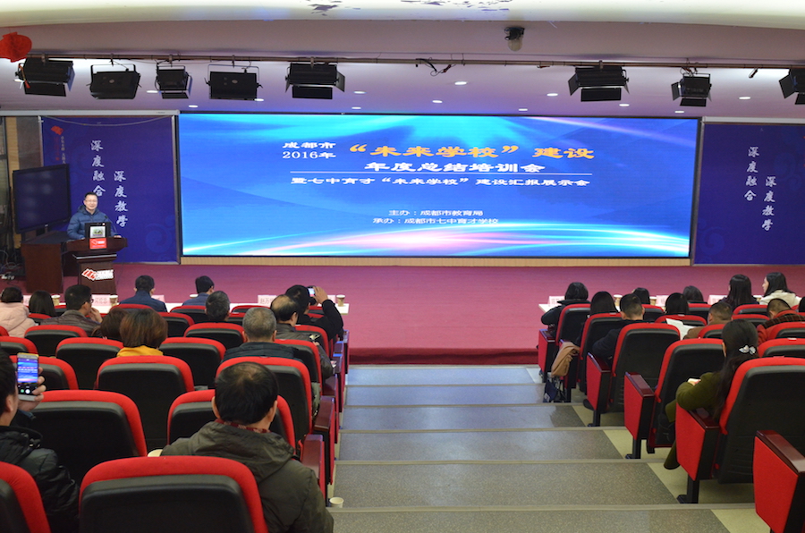 1月4日下午,成都市教育局组织召开的2016 年“未来学校”试点工作总结暨培训会在成都七中育才学校举行。成都市教科院、市技装中心相关负责同志,国家教育发展研究中心成都教育改革研究基地各工作部相关专家,13 所成都市“未来学校”试点学校校长以及新增“未来学校”试点区域代表及新增“未来学校”试点学校校长等百余名代表参加了本次会议。