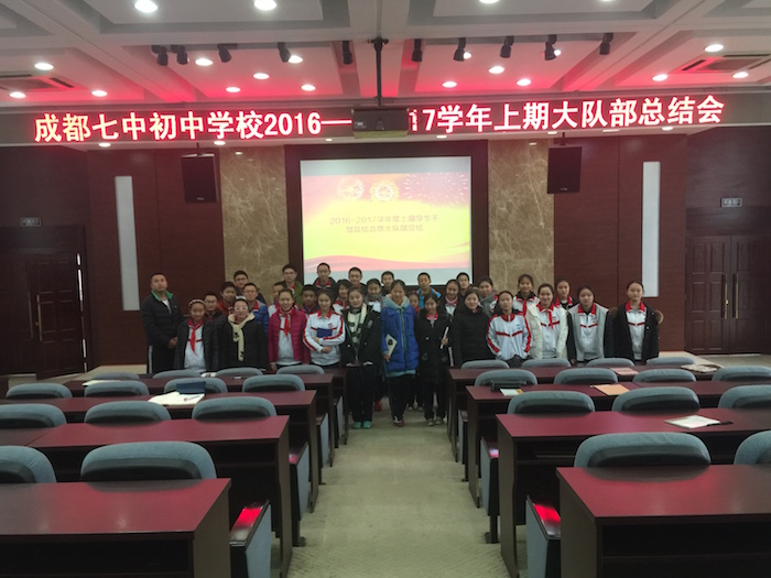 2017年1月11日,成都七中初中学校2016——2017学年度上期大队部总结会在学术一厅召开。