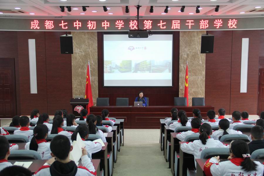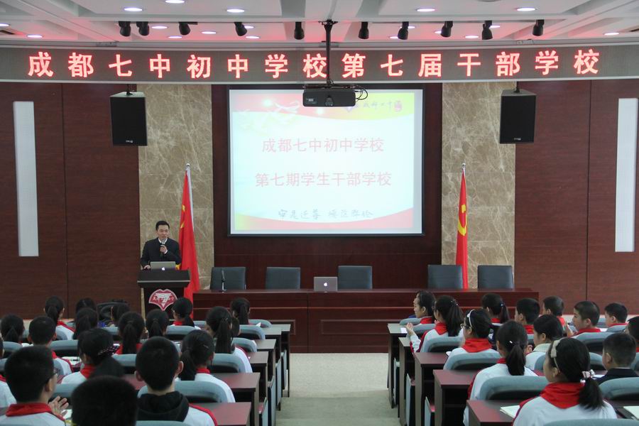 苏轼曾说,古之成大事者,不惟有超世之才,亦必有坚韧之志。所以这就是我们相聚在七初的理由。在学校的组织下,成都七中初中学校第七届干部学校于2017年2月27日正式开始。首日,学校便邀请到了李笑非校长为大家进行第一课时的报告。参加此次干校培训的同学有:社团联合会,学生会,大队部,初一初二各班优秀班干部。他们在这里,穿着整洁的校服,拥有着一颗七初学子炽热的求学之心,满怀着对班级发展的期望,对学校建设的美好想象,对国家文明传承的热情,骄傲的端正的坐在这里,聆听老师们的教诲。