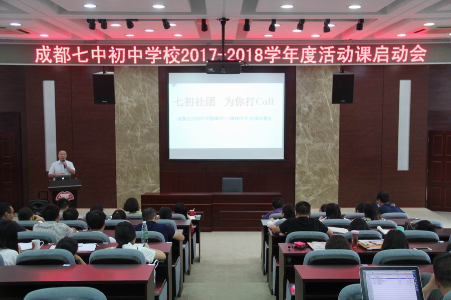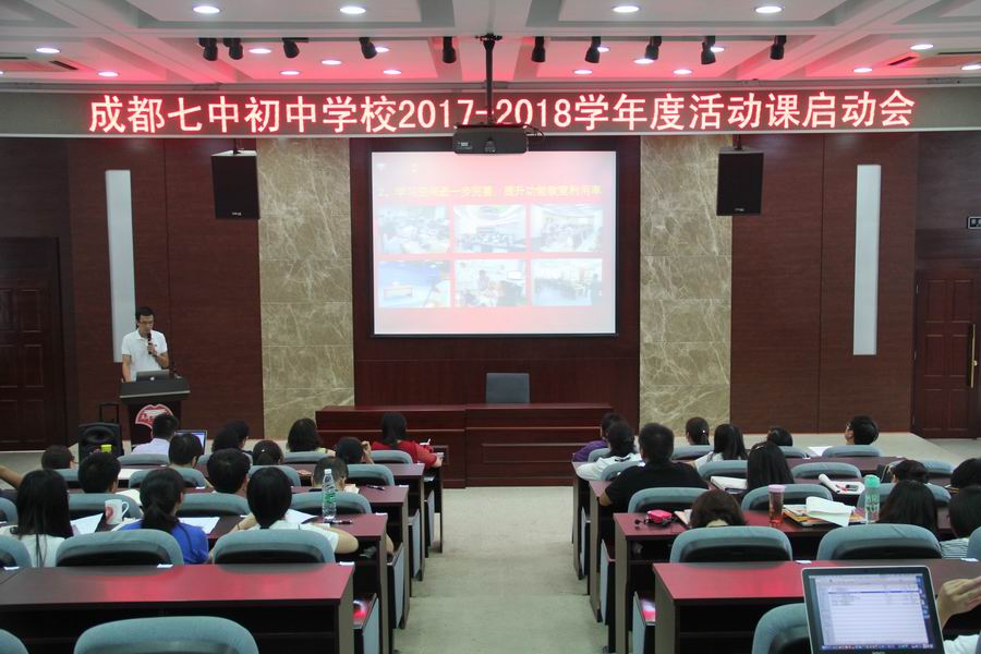 2017年9月13日下午4点整,成都七中初中学校2017-2018学年度活动课启动会在学术报告一厅正式召开。会议由教学管理部副主任吴旭光老师主持。