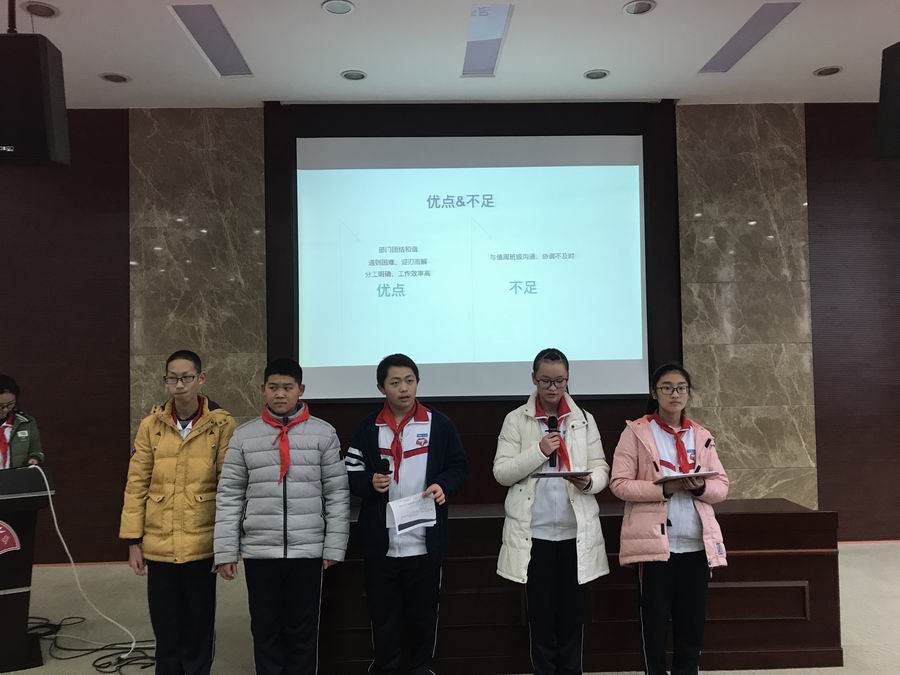 接着,大队部指导老师王鹏总结本学期的工作,鼓励初一的干部们要更积极投入到学习工作中,勇于展示自己的能力。