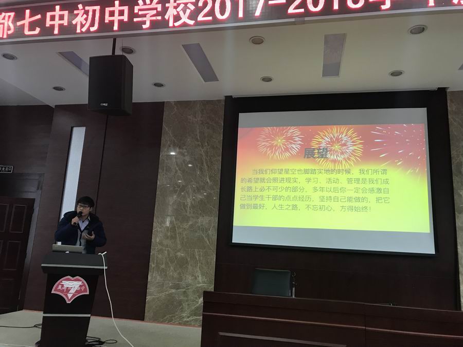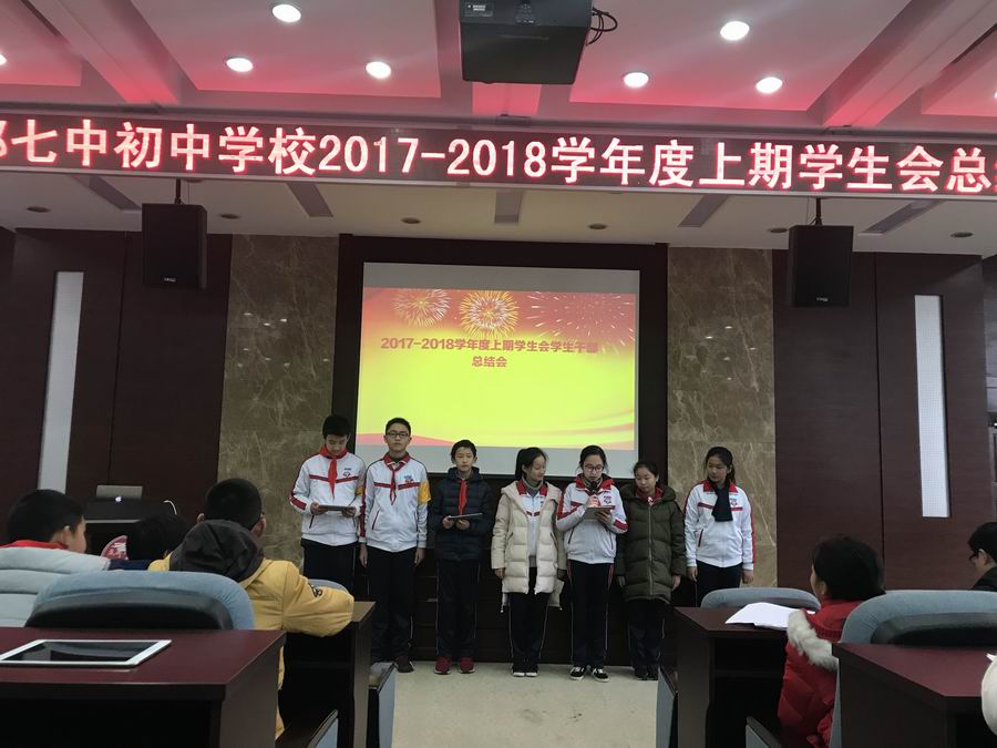 最后,指导老师刘贡常和学工部副主任张力生老师总结了今天的大会,并对以后的学习和工作提出新的要求和期望。七初学生会的脚步将会更加坚实。