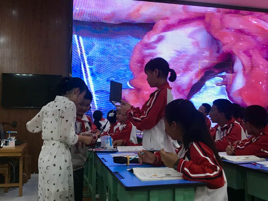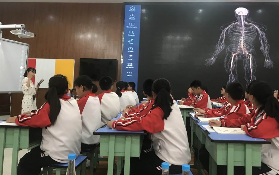 5月17日下午,我校生物组冯霄月老师老师在此次研讨会的生物学科活动中献示范课《神经系统的组成》。冯老师从神经系统的功能导入,充分运用猪脑和牛脊髓等实物、神经元模型、学科专用APP“Essential Anatomy 5”等教学资源,设计了环环相扣的教学活动,帮助学生在充分观察的基础上进行深入分析,构建了“神经系统”“神经元”等重要概念,并建立“神经系统是以神经元为基础构成的复杂网络,承担接受、传递、处理信息等功能”的本节中学概念。冯老师通过新颖的设计、灵动亲切的教学,帮助学生在愉悦的课堂氛围中构建了概念体系,并充分渗透生命观念。本节课获得听课老师的一致好评,被主持人赞为“一堂与众不同的生物课”。