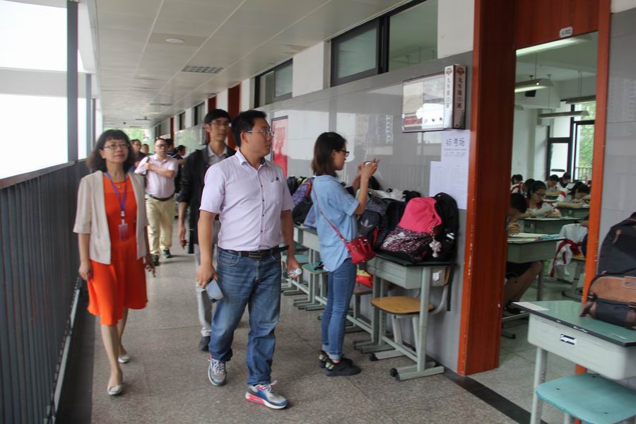 会后,在石敏副校长的陪同下,草池学区各校领导巡视了会场考场,学校里规范且标准的考场布置,整齐而有序的物品摆放,有序不紊的安排彰显了七初人一丝不苟的工作风格,老师们严谨认真的工作态度给大家留下了深刻的印象。