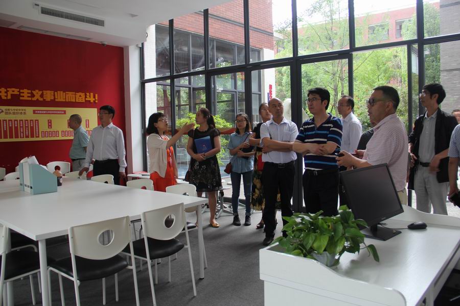 在后勤部曾畅畅主任的带领下,草池学区考察团参观了七初校园,湿润的空气带走了闷热的氛围,漫步在七初校园,甚是惬意。曾畅畅主任的陪伴下,考察团依次学校的各个功能教室参观,金融实验室、音乐厅、创客教室、录播教室……七初的功能教室让考察团赞不绝口,在功能教室背后所蕴含着的,是先进的教育理念,创意四射的拓展活动,共同打造具有七初特色的开放性互动课堂。