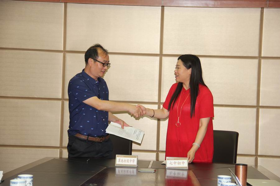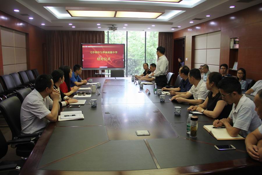 高新区基层治理和社会事业局于4月就印发了《建立高新东区与南区、西区学校发展共同体的实施意见(试行)》的文件,为响应号召,在本次观摩活动后,成都七中初中学校与草池学区代表学校草池初级中学举行了对口帮扶结对签约仪式。