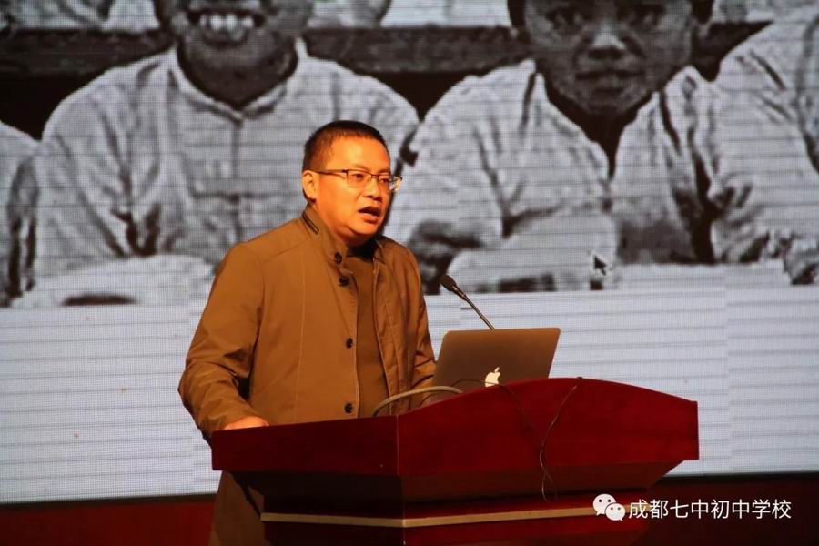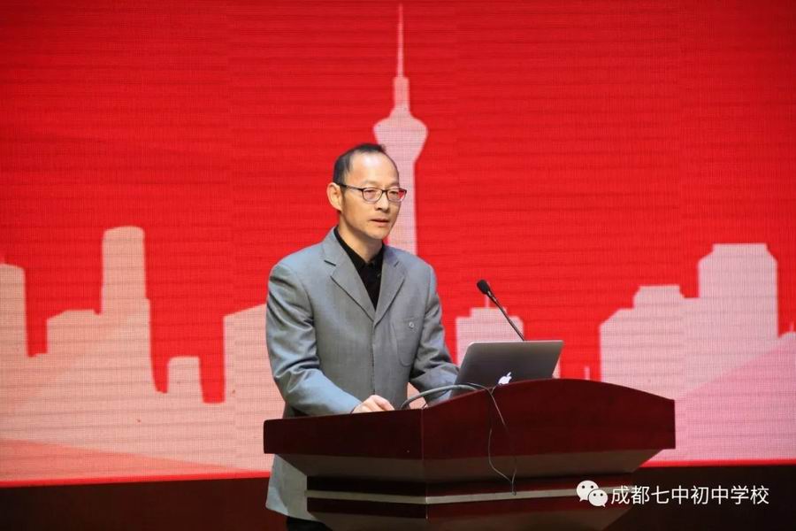 接下来是成都市教育局左华荣副局长讲话,左局长受刘强局长的委托,代表成都市教育局分析了成都教育的现状和创新发展,强调了本次学术会议的意义,肯定了成都七中初中学校十年的办学成绩,并提出希望,总结出规律,总结出思想,总结出智慧。