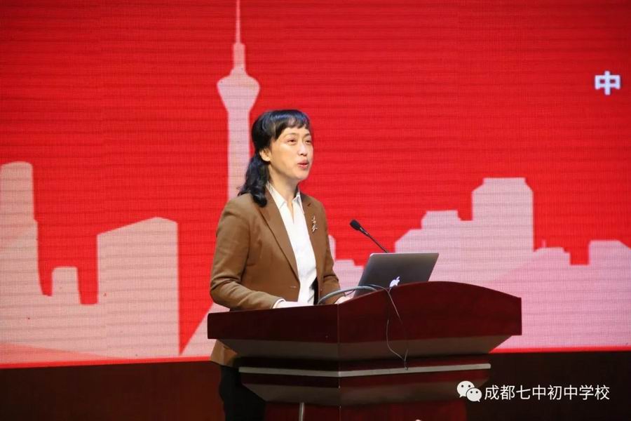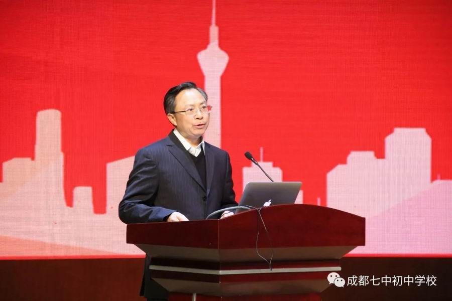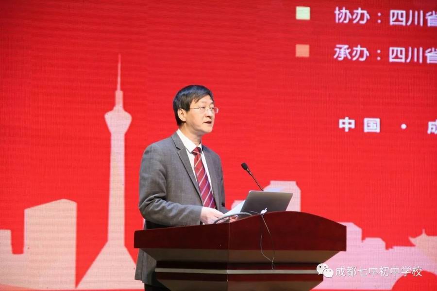 最后由教育部中学校长培训中心主任代蕊华教授讲话。谈到教育的改革创新和习近平在教育大会上的论述。提出在不断变革的时期,教育需要坚守规律,贴近本质。提出什么样的教育能给孩子产生广阔而深远的影响。同时也赞赏成都七中初中学校在短短的十年里,取得的辉煌成就。