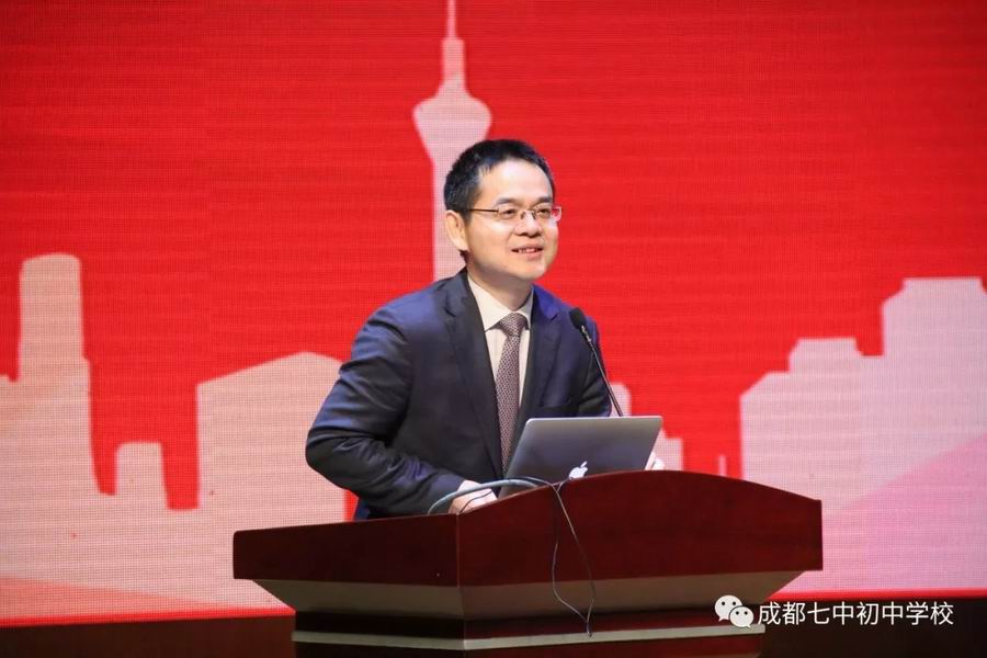成都高新区基层治理和社会事业局匡世联副局长送来了诚挚的祝福,给参会嘉宾展示了成都高新教育30年的蓬勃发展,将高新教育与产业发展协同发展,感谢成都七中初中学校十年给高新教育所做的贡献。