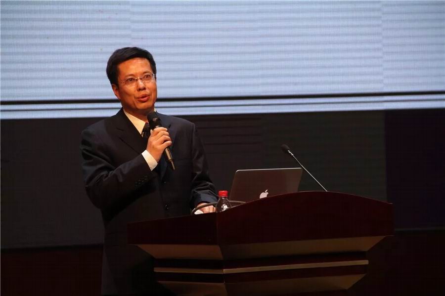 唐校长以施工图和大楼为喻专题围绕题目《好课程,育全人,赢未来》展开,讲到课程是育人之魂,课程中核心素养的提出,介绍了苏州振华中学校的育人体系。