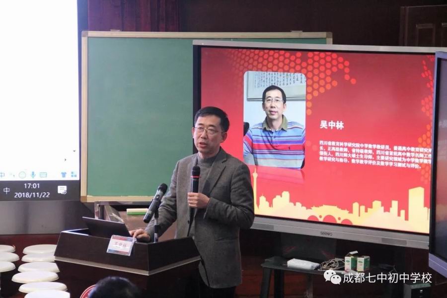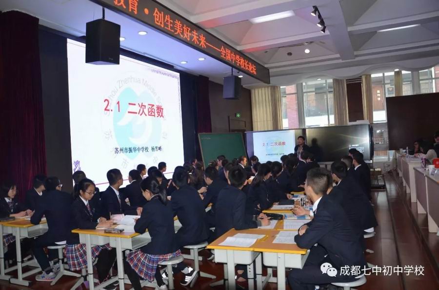 活动分为三堂展示课:江苏常州明德实验中学(北郊初中分校)陈江红老师展示课的课题是《数据分析之平均数》,苏州市振华中学校杨雪峰老师展示课的课题是《二次函数》,成都七中初中学校罗志英老师展示课的课题是《二元一次方程与一次函数》。最后四川省教育科学研究院普通高中教育研究所所长吴中林先生进行了专家点评。
