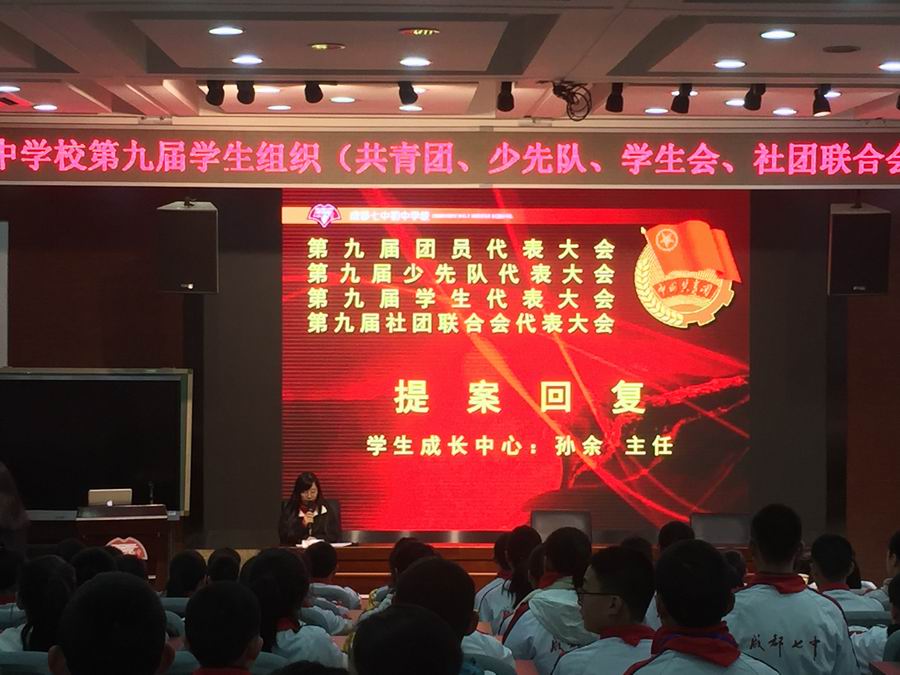 学生成长中心主任孙余老师针对同学们所提的活动统筹,校服购买,礼仪规范等问题,进行了耐心解答。孙老师肯定了同学们有独立思想,有深度思考的提案,并期待与会的各位学生代表,以身作则,发挥榜样力量,引领身边更多的同学去维护七初荣耀。