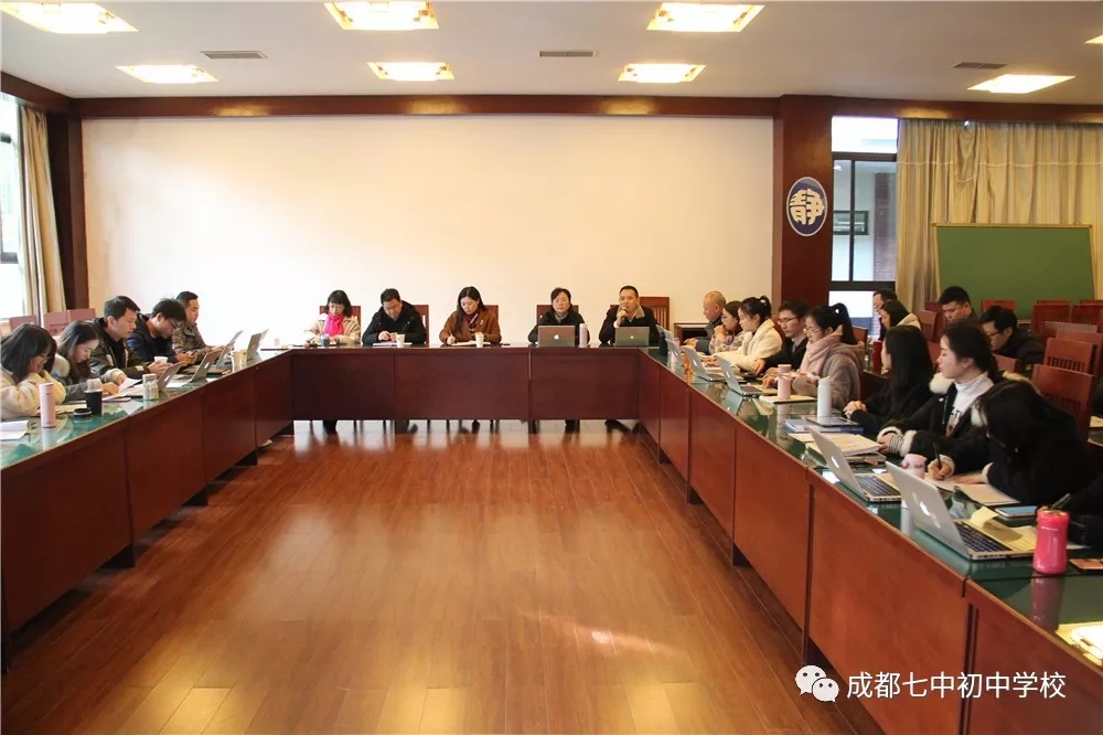 清寒的冬日,七初的校园里多了几分寂静,少了几分喧嚣。2019年1月13日,星期天,学校部门学期教学工作总结从早上8:30开始,成都七中初中学校的图书馆内,坐着的是全校的全体行政人员、年级组长、教研组长、备课组长、选修课负责人等,大家依次发言,对本学期的教学工作进行了全面的总结、反思与展望。