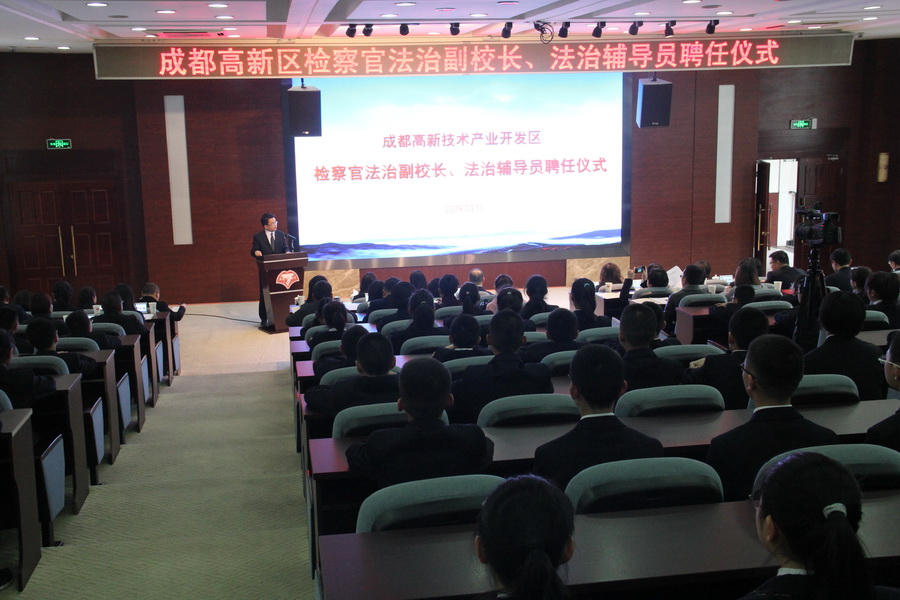 “芳菲三月,拂堤春光” 2019年3月11日,成都高新区检察官法治副校长、法治辅导员聘任仪式在开云入口隆重举行。