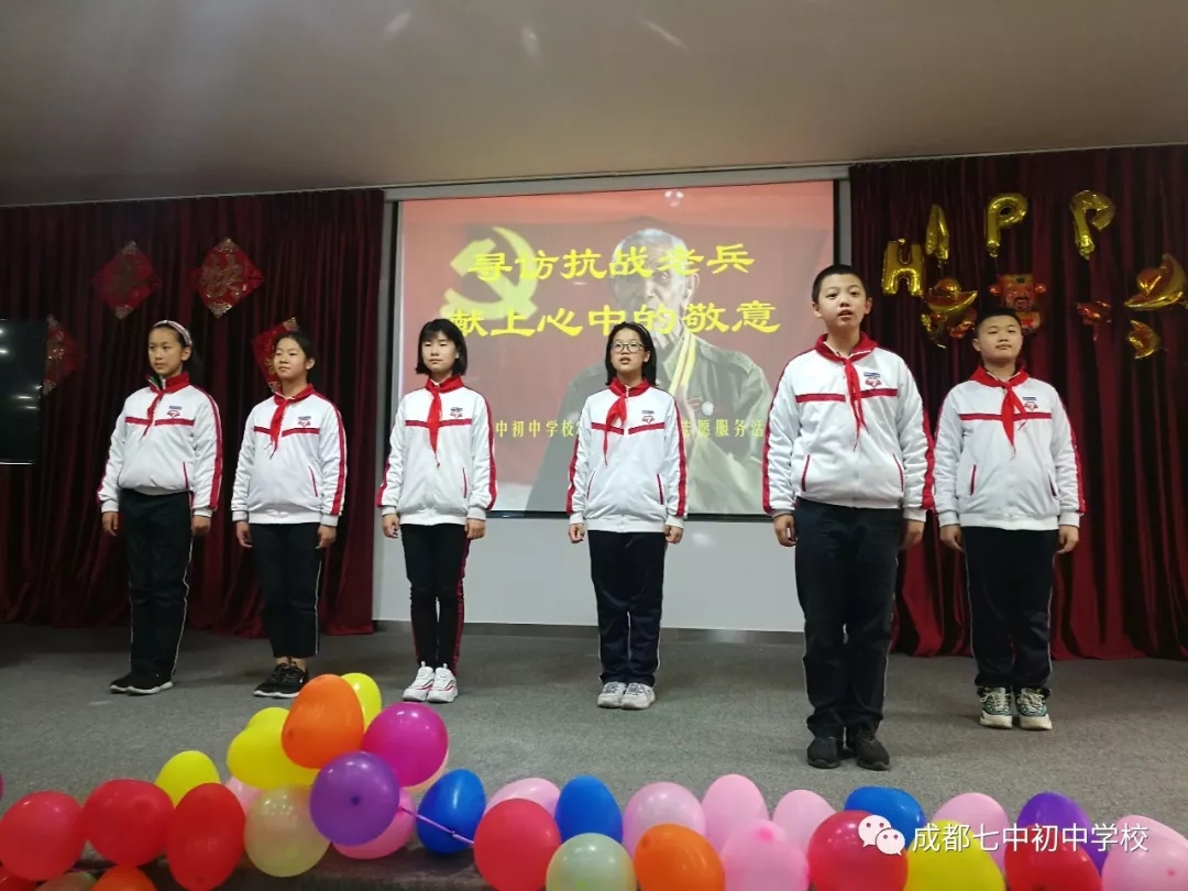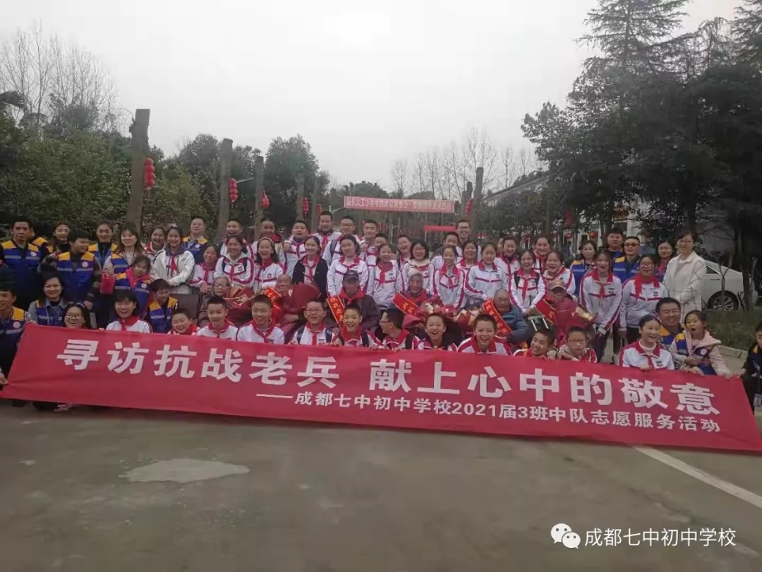 在建国70周年之际,成都七中初中学校3中队的学生想用自己的实际行动表达自己对抗战老兵的感恩,对伟大祖国的感恩。我们的活动还得到了关爱抗战老兵川军团、小义1+1爱心公益组织的大力支持。