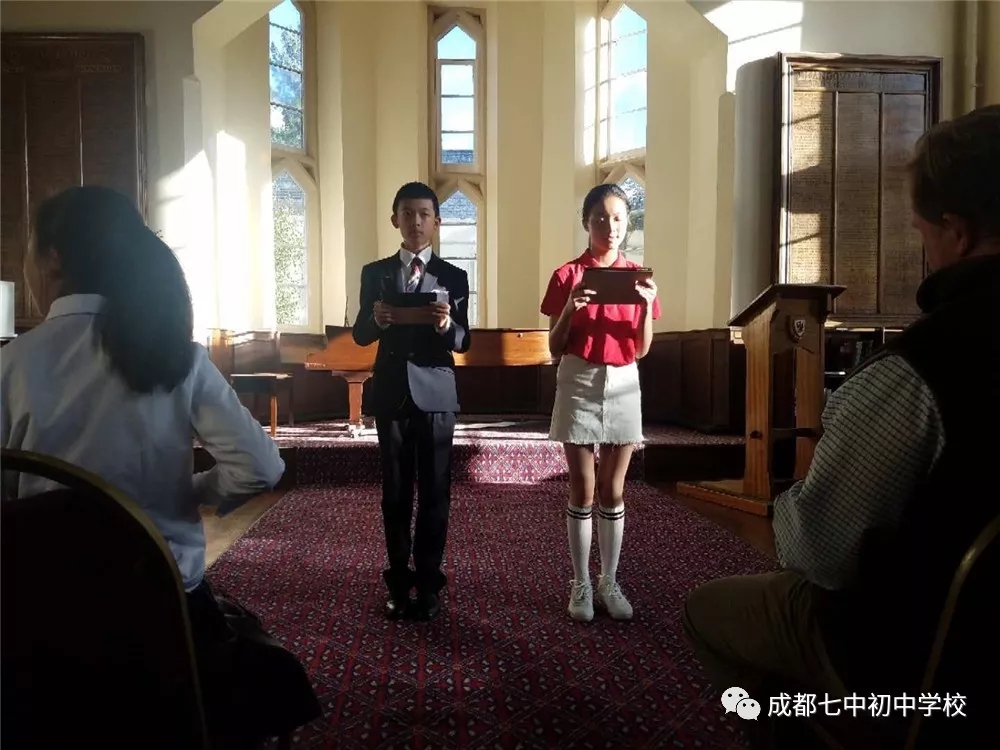 兰德福瑞学院为到访的七初师生精心准备了结业典礼。七初的同学们则在典礼上充分展示了中国当代中学生的风采。主持人全英语现场主持,现代舞、街舞表演、器乐伴奏小合唱《成都》、钢琴独奏、配乐诗歌吟唱《水调歌头》、现场书法等节目赢得了在场中英师生的阵阵喝彩和热烈掌声,兰德福瑞学院的同学代表也即兴表演了吉他独奏。校长Mr.Guy兴致勃勃地给七初访问同学颁发了结业证书。