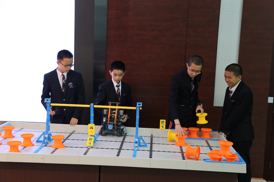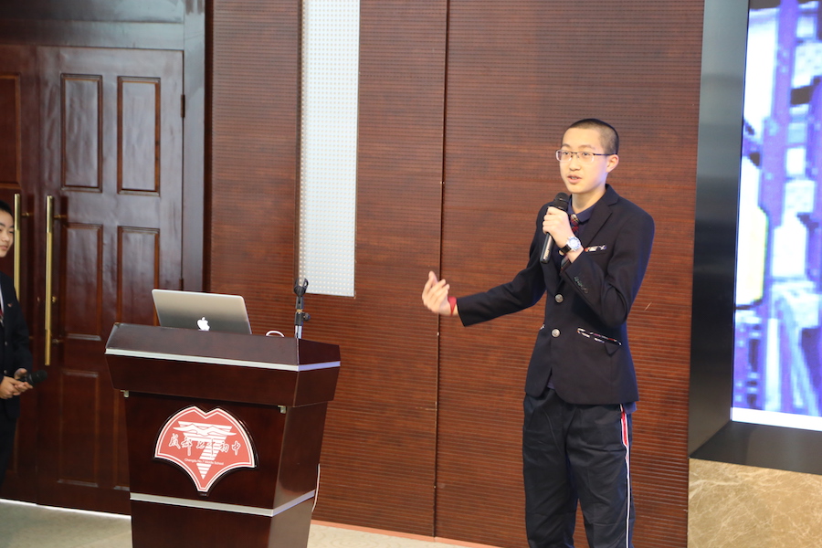 2019年5月15日中午1点,刚刚从美国VEX世界锦标赛载誉归来的七初VEX战队,在学术一厅“第11届科技活动月——未来领袖讲坛”热情开讲,本次未来领袖讲坛的主题是“智能新时代,科创追梦人——与世界金奖选手一起走进机器人的世界”。来自2020届8班的杨涵钦队长带领3名队员分别是2020届6班孙家辉、2020届8班王孚龙、2020届8班杨景盛,热情洋溢的讲述了他们参加VEX世界锦标赛的所见所闻以及心得体会。来自初一年级各个班级的100多名同学聚精会神的聆听讲座,并表现出了对机器人浓厚的兴趣。这次讲座,不仅展示了我校机器人社团的风采,同时让更多的同学认识了机器人和机器人竞赛,激发了同学们对人工智能和科学技术的无限向往,相信在不久的将来会有更多的同学投身于祖国的人工智能事业,为国家科技发展贡献他们的力量!