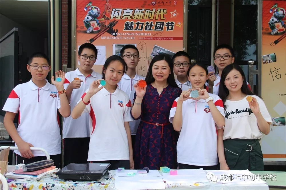化学社:在指导老师李笑非校长的组织下,化学社的同学们在推车上摆满了各种各样的手工皂品,一块块精致的手工皂,形状各异,香味满溢,五彩斑斓的颜色一瞬间就吸引了来往的师生,每一块手工皂都凝聚了化学社的同学们艰辛制作,活动尾声时,化学社的同学们和指导老师李校长一起也慷慨地送出了他们制作的手工皂。