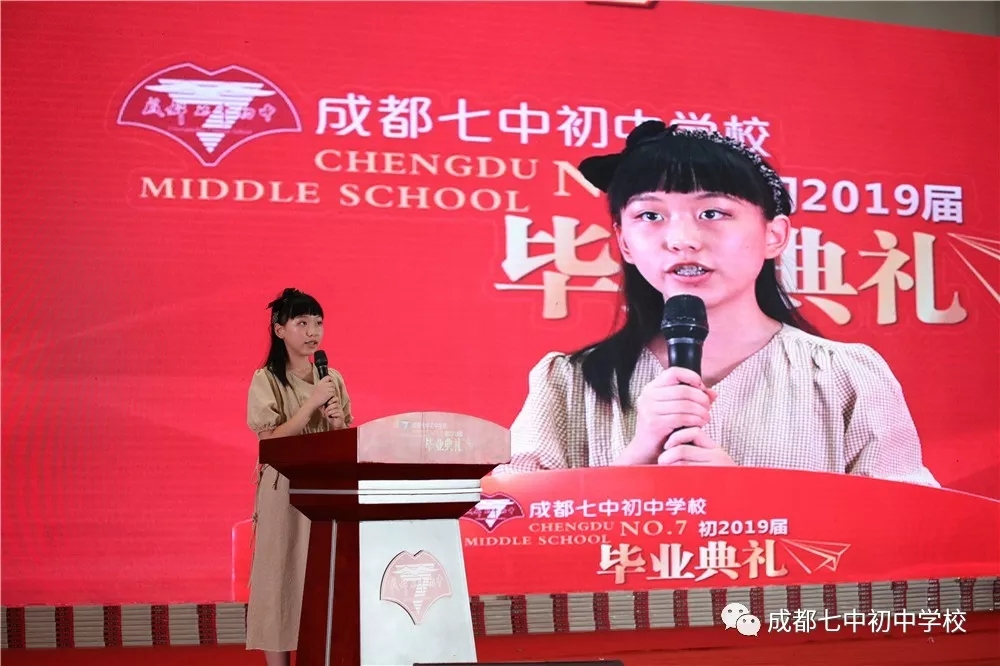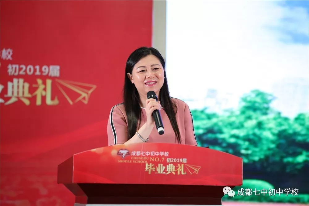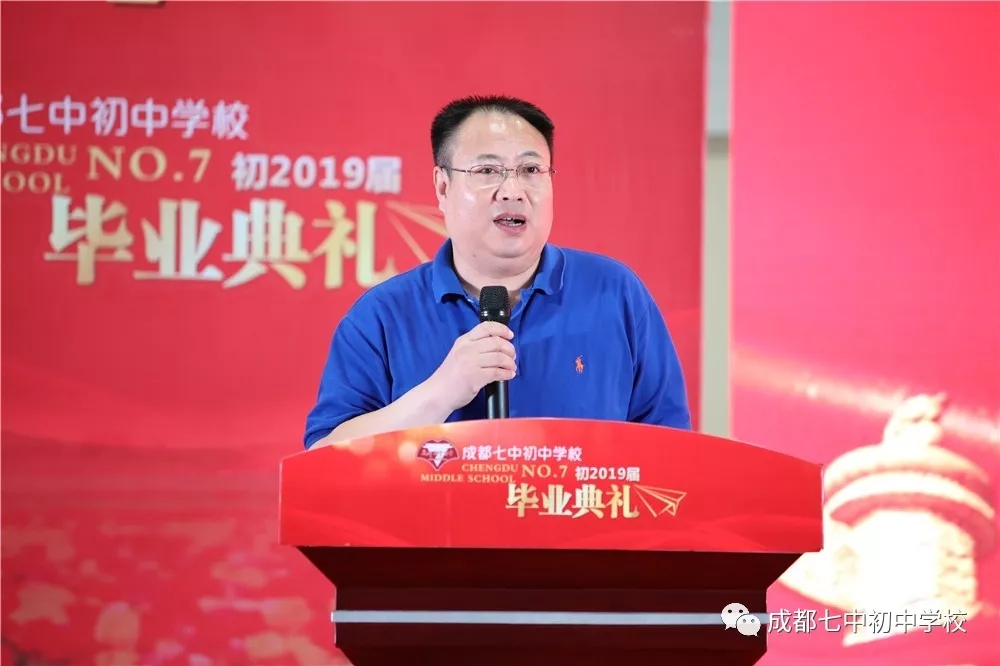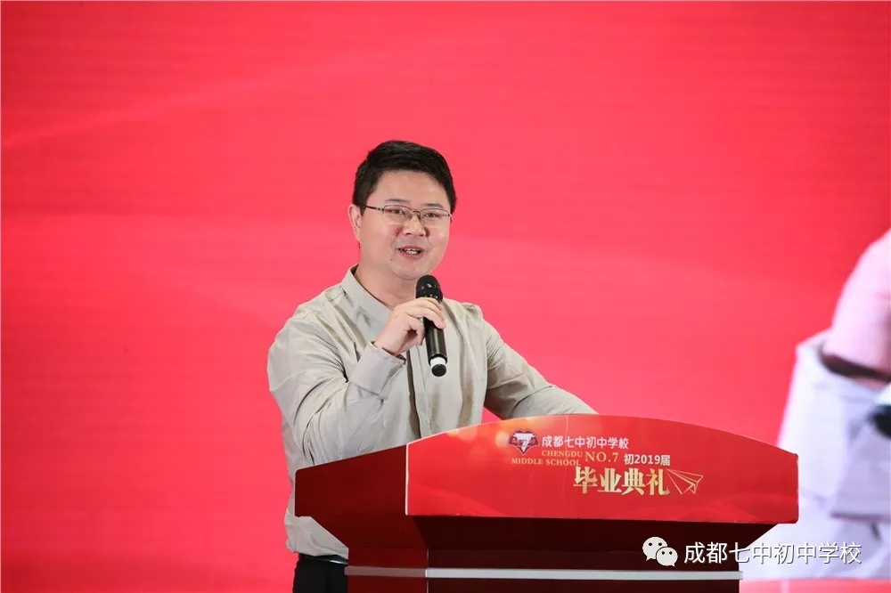 成都七中校长、成都七中初中学校名誉校长易国栋老师如约而至,在毕业典礼上为同学们带来特别的祝福:胸怀日月,追求卓越,目的是将来能够看到更远更宏阔的风景,根在七初,志在明天!同时易校长也向孩子们发出诚挚邀请:“初中毕业,真正的成长才刚刚开始,几天以后大家就要选择高中了,欢迎大家有机会在成都七中继续自己的学习生涯!”