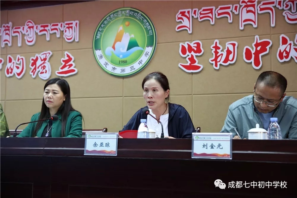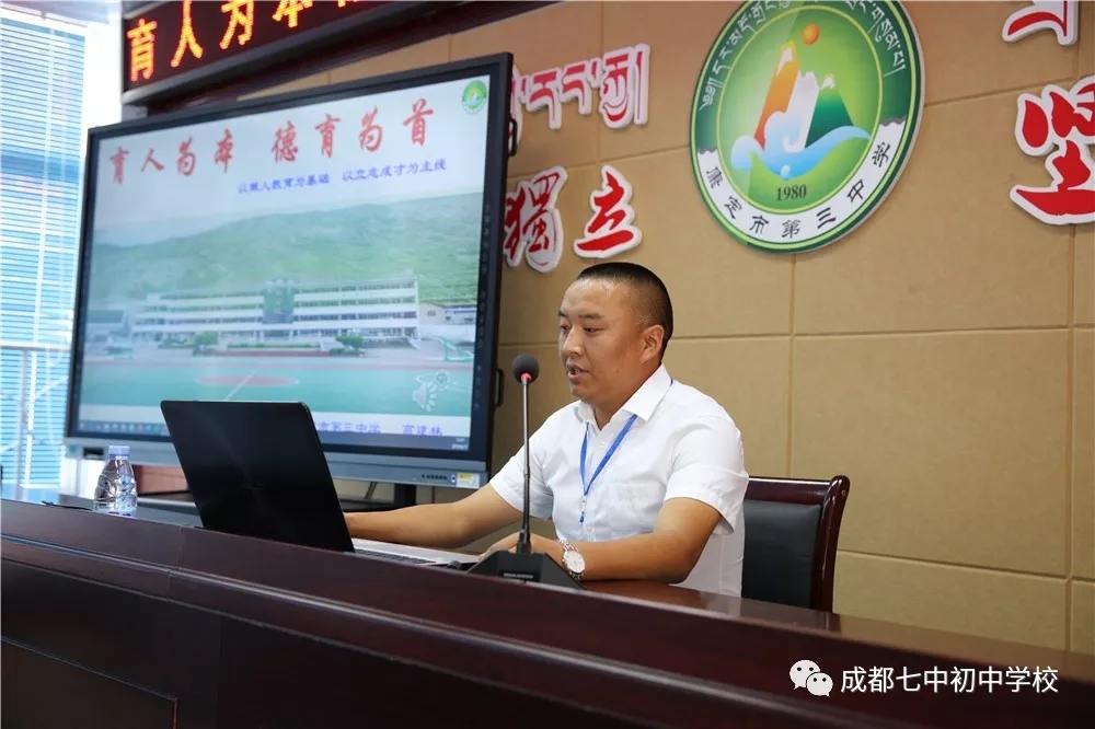 康定市第三中学德教主任高建林作《育人为本 德育为首》专题发言。介绍了康定三中在德育方面的工作与成效,体现了地方特色。