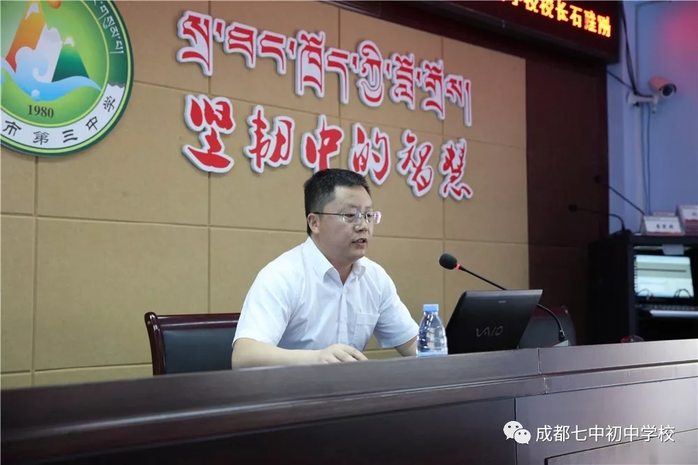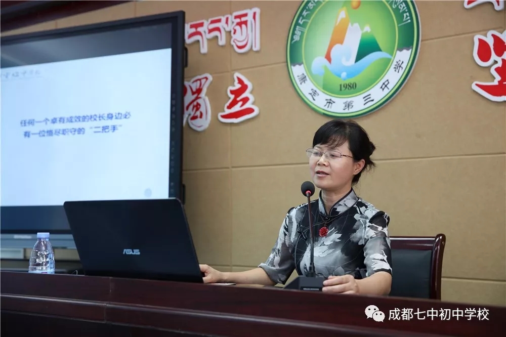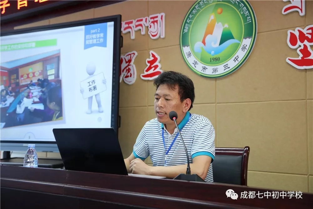 康定市第三中学曾祥明主任作《教学管理》专题发言,展示了康定三中教学管理方面的特色。