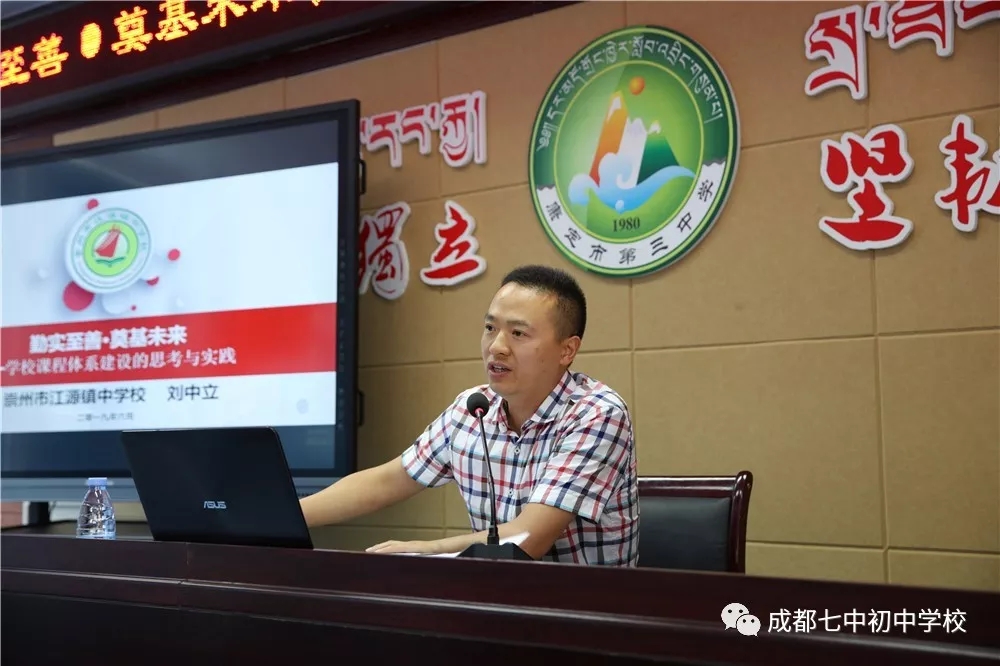 崇州市江源镇中学校刘中立校长报告题为《勤实至善,奠基未来》,介绍了学校课程体系建设的思考与实践,在学校课程体系建设方面的做法和成效。