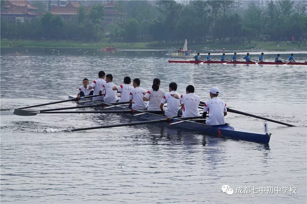 比赛不但彰显了七初赛艇队的团队精神、拼搏精神,而且比赛的文明风度,让七初这个响亮的名字深深刻在了锦城湖畔的每一滴水,每一棵草木里,以及每位参赛选手与裁判员的心中。
