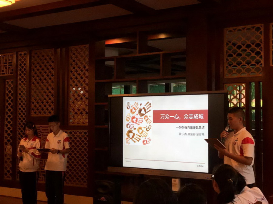 三班班委以“仰望星空,勇敢前行”为主题给出总结,坚持和静心是关键词。