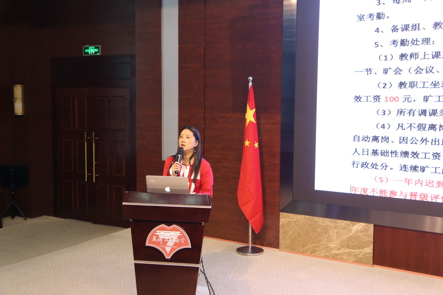行政办公室主任曾畅畅老师对《成都七中初中学校考勤制度(修订方案)》向代表们做出了说明,方案进一步明确和细化了相关要求。