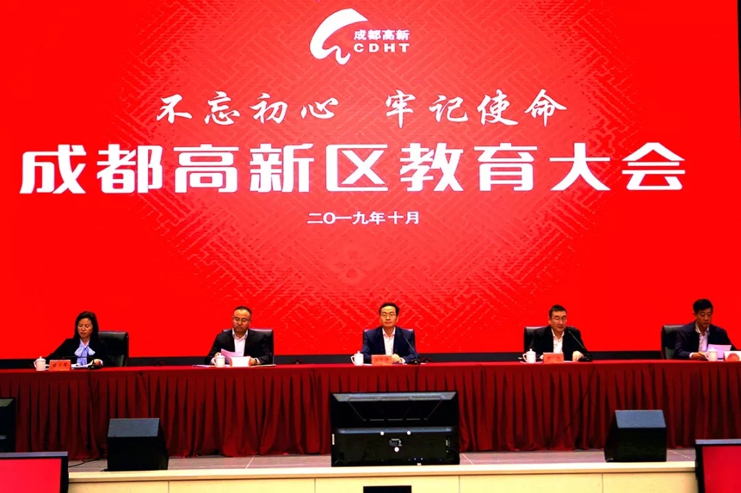 10月15日,为全面贯彻落实全国、省、市教育大会精神,结合“不忘初心,牢记使命”主题教育活动,成都高新区教育大会在成都市中和职业中学校隆重召开。成都高新区党工委副书记、管委会主任余辉同志主持会议。