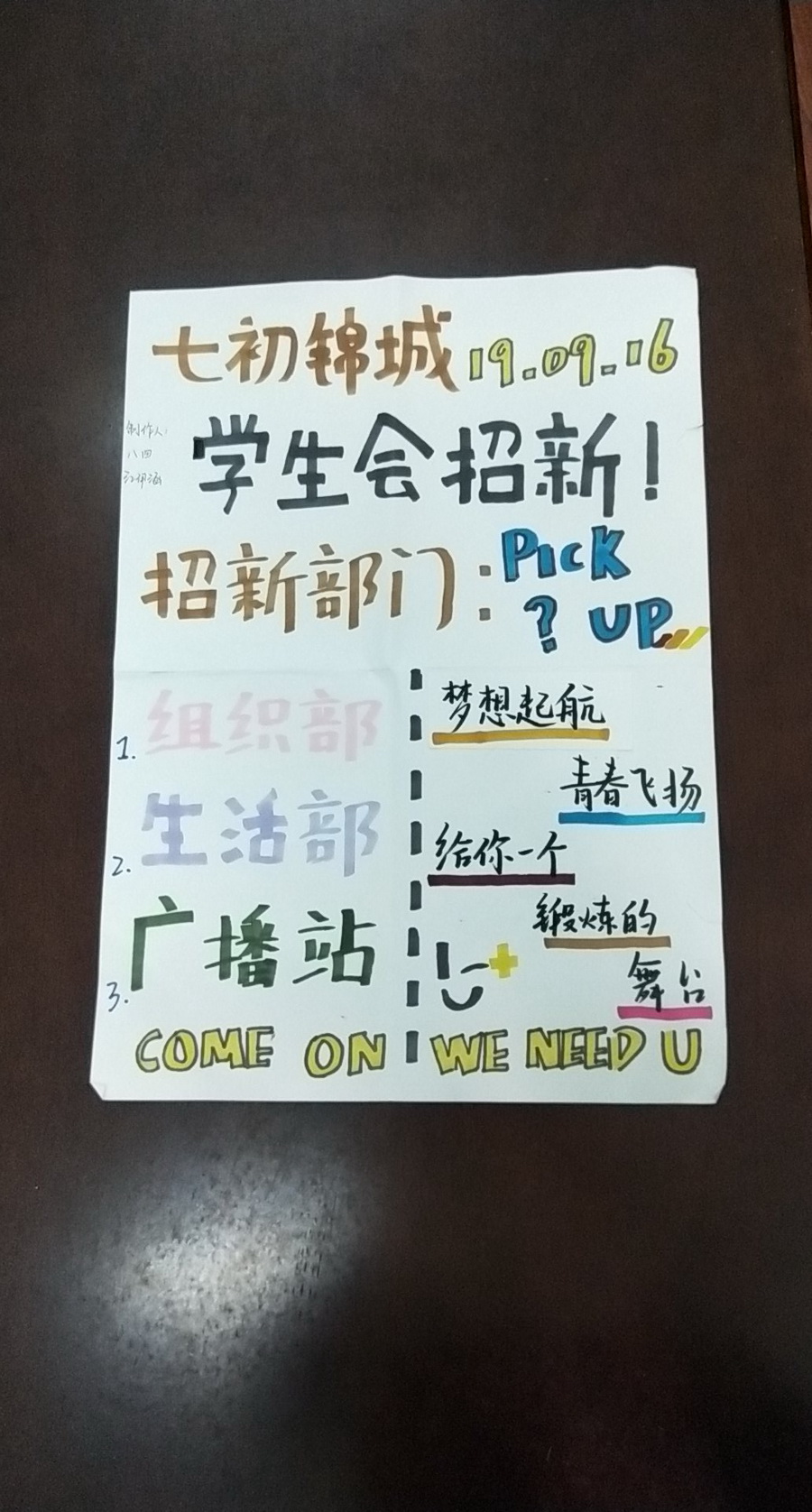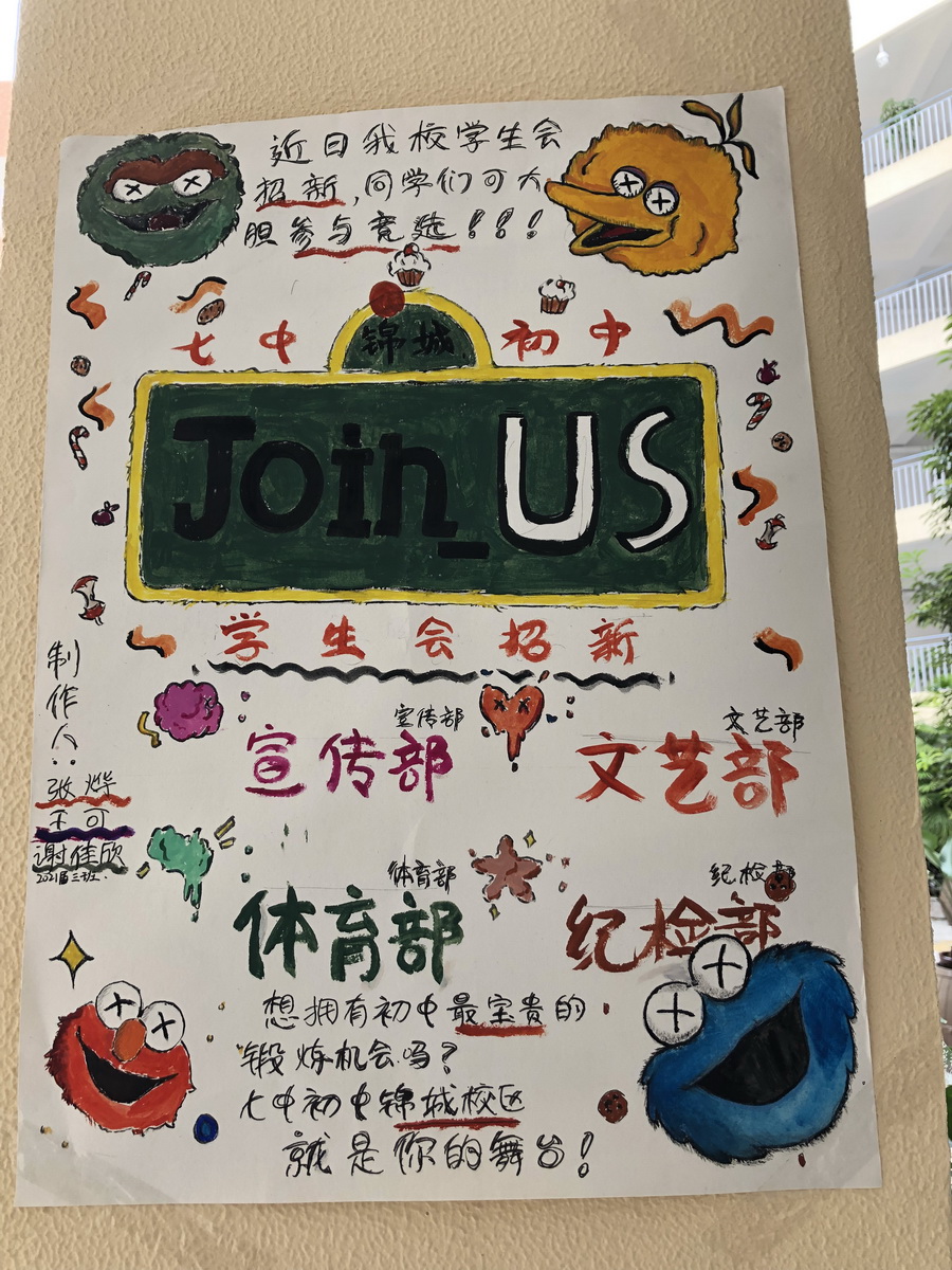 在七初,有这样一群有责任有担当的同学们,聚集在我们的大队部、学生会!近期,七初锦城校区第一届大队部、学生会招新了。